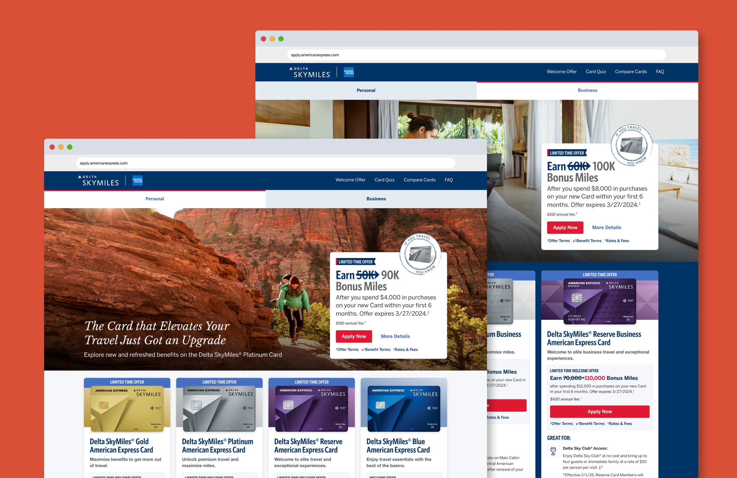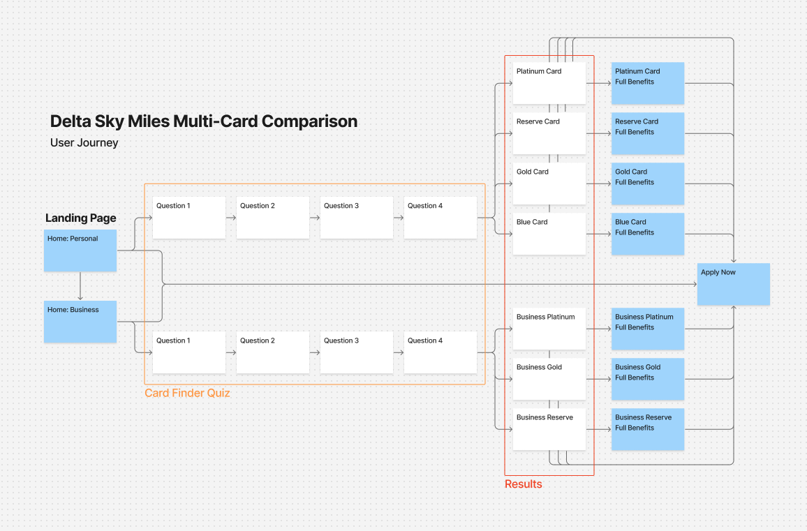 As the Lead UX Designer, I led the end-to-end experience strategy and design for the Delta SkyMiles American Express co-brand landing pages across both Consumer and Business (B2B) segments. My role focused on aligning business objectives, partner brand standards, and user needs into a cohesive, high-performing acquisition experience.